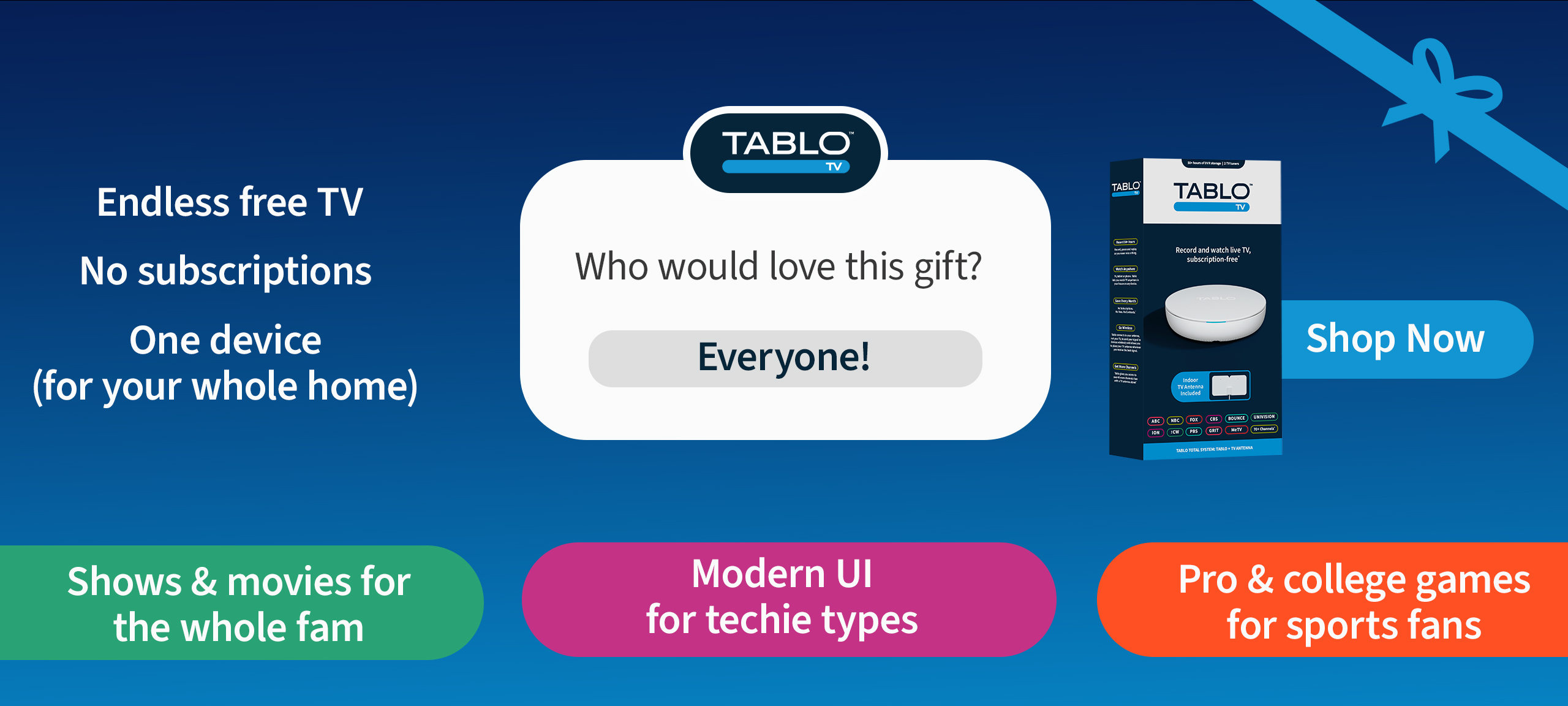 Watch ABC, CBS, FOX, NBC & more as well as 100+ free streaming channels with Tablo.